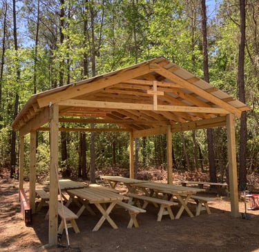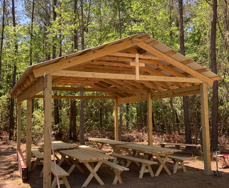 In 2022, I completed my eagle project. My project was a 16x20 outdoor covered pavilion with 4 picnic tables. I got the project approved and planned out the entirety of it. From getting plans, materials, clearing the area for the project, hours of measuring, cutting and building. I had amazing support from my friends, family and fellow scouts. The project was for the church of the palms in Okatie SC where they use it for fellowships and worship services.